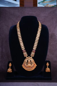 Unique Premium Embossed Lakshmi Designer Long Necklace Set