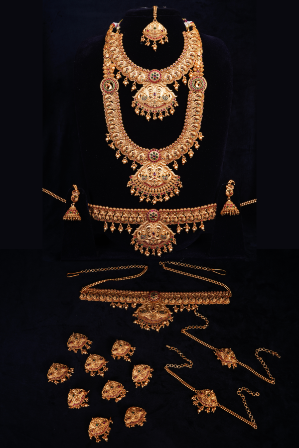 Premium Antique Gold Lakshmi Designer Bridal Set